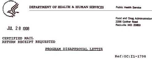 FDA "Program Disapproved Letter" (July 28, 1998)