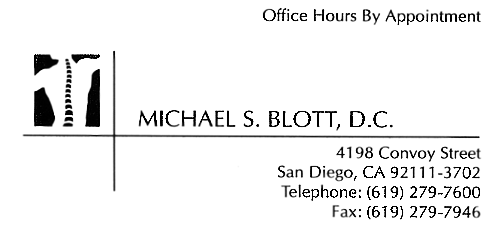 - San Diego County Chiropractic Society "Doctor of the Year" 1993